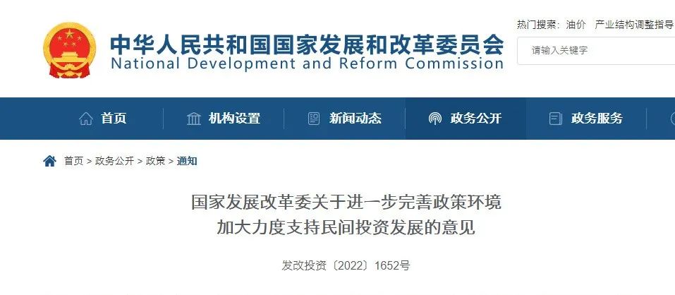 1.國家發(fā)展改革委發(fā)布進一步完善政策環(huán)境加大力度支持民間投資發(fā)展的意見