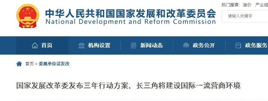 4.國家發(fā)展改革委印發(fā)《長三角國際一流營商環(huán)境建設三年行動方案》