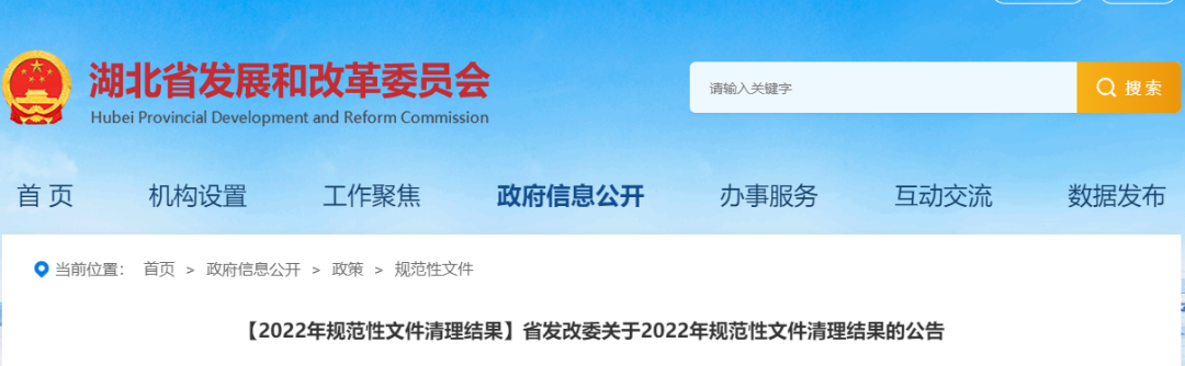 1.湖北省發(fā)改委關于2022年規(guī)范性文件清理結果的公告