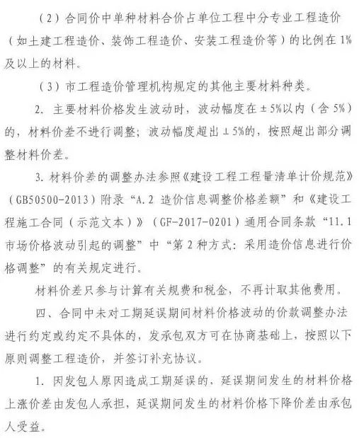 三、發承包雙方應按照工程造價管理的相關規定,就材料價差調整等問題及時簽訂補充合同或協議。