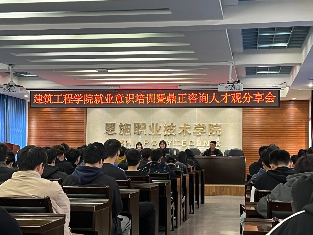 4月6日,鼎正恩施分公司總經理彭萍受邀前往恩施職業技術學院建筑工程學院,為應屆畢業生帶來了《關于就業意識培訓暨鼎正咨詢人才觀》分享會。