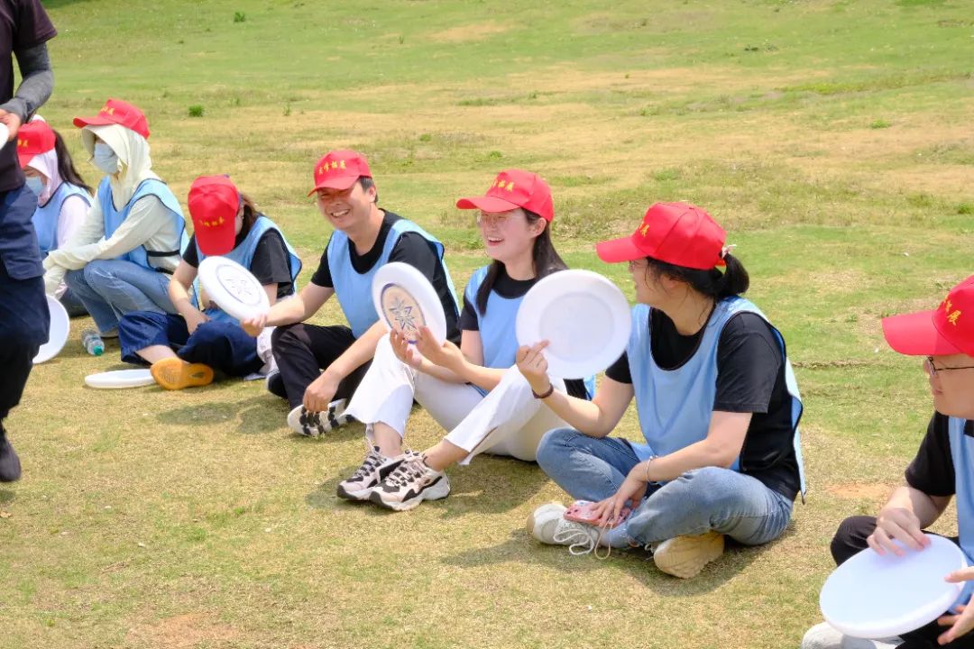在教練的帶領下,大家來到戶外場地開始實地開展飛盤競賽。飛盤練習場上,有迅速上手并漸入佳境的小伙伴,有互相鼓勵對方說“沒關系,再試一次” 的組隊搭檔,也有時不時傳來歡聲笑語的同事