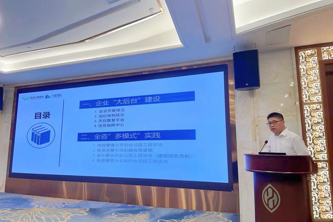 五洲工程顧問集團(tuán)有限公司執(zhí)行總經(jīng)理柴恩海做了《全過程工程咨詢探索實(shí)踐》的主題報(bào)告,基于行業(yè)全咨標(biāo)桿企業(yè)轉(zhuǎn)型發(fā)展的實(shí)際,詳細(xì)介紹了公司全咨“大后臺(tái)”建設(shè)和全咨模式的實(shí)踐兩個(gè)方面的做法和經(jīng)驗(yàn),以及通過數(shù)字化平臺(tái)建設(shè),賦能全咨業(yè)務(wù)發(fā)展,并對(duì)當(dāng)前全咨發(fā)展提出了相關(guān)建議。