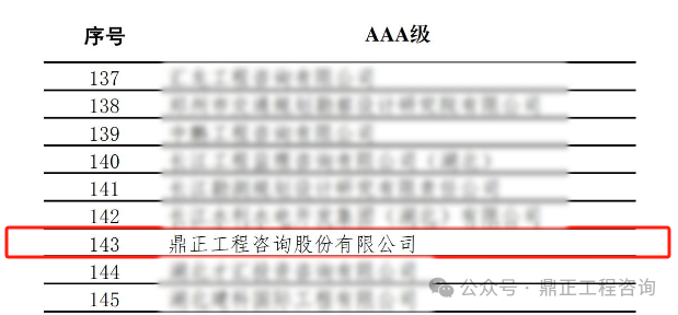 近日,中國工程咨詢協會發布了2024年度工程咨詢單位信用評價公告,鼎正憑借優異的誠信建設和信用管理能力,榮獲“AAA級信用等級”評價。