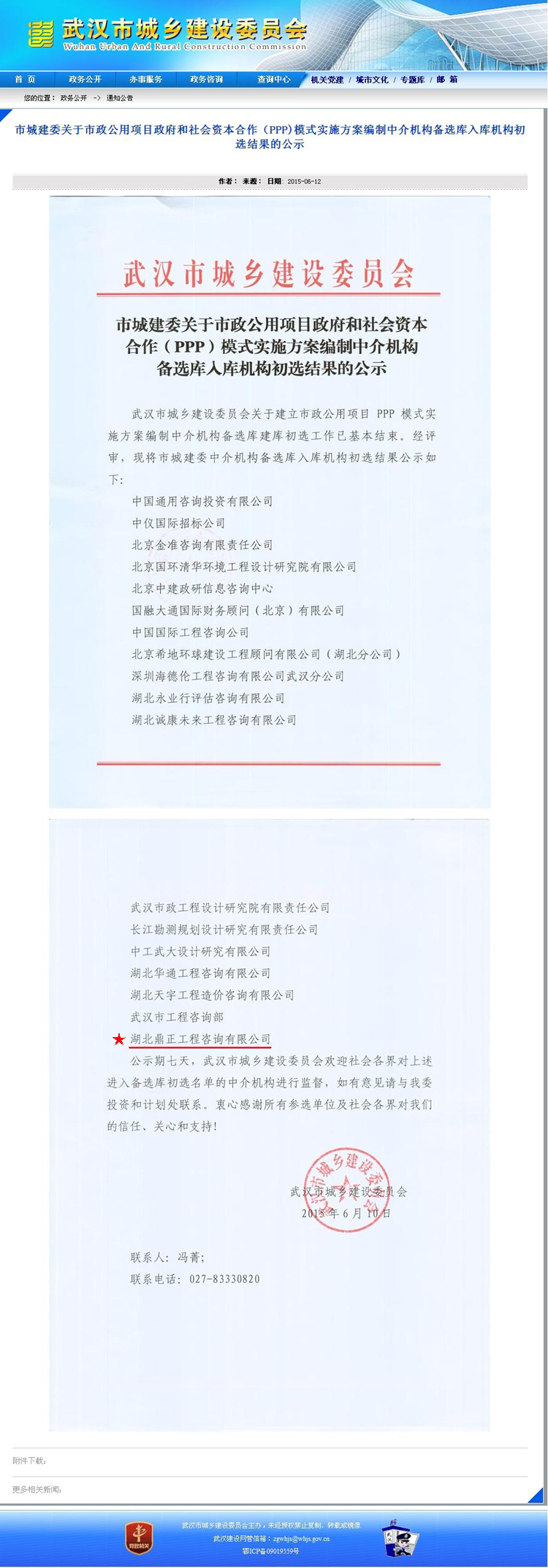 【經(jīng)營成果】我司入圍市城建委關于市政公用項目政府和社會資本合作(PPP)模式實施方案編制中介機構備選庫