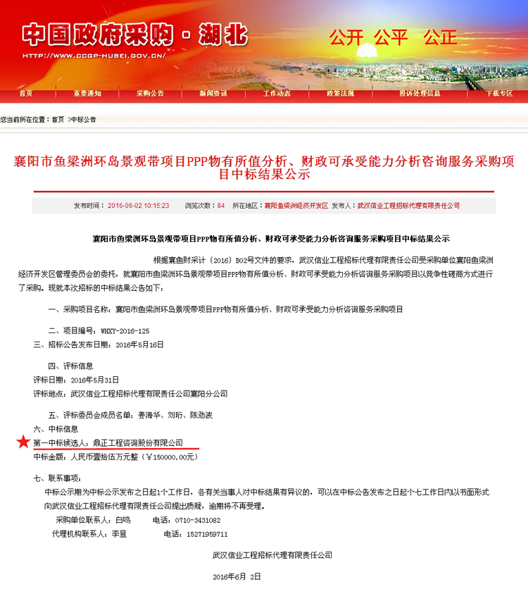 【經(jīng)營成果】我司中標(biāo)襄陽市魚梁洲環(huán)島景觀帶項目PPP物有所值分析、財政可承受能力分析咨詢服務(wù)?采購項目