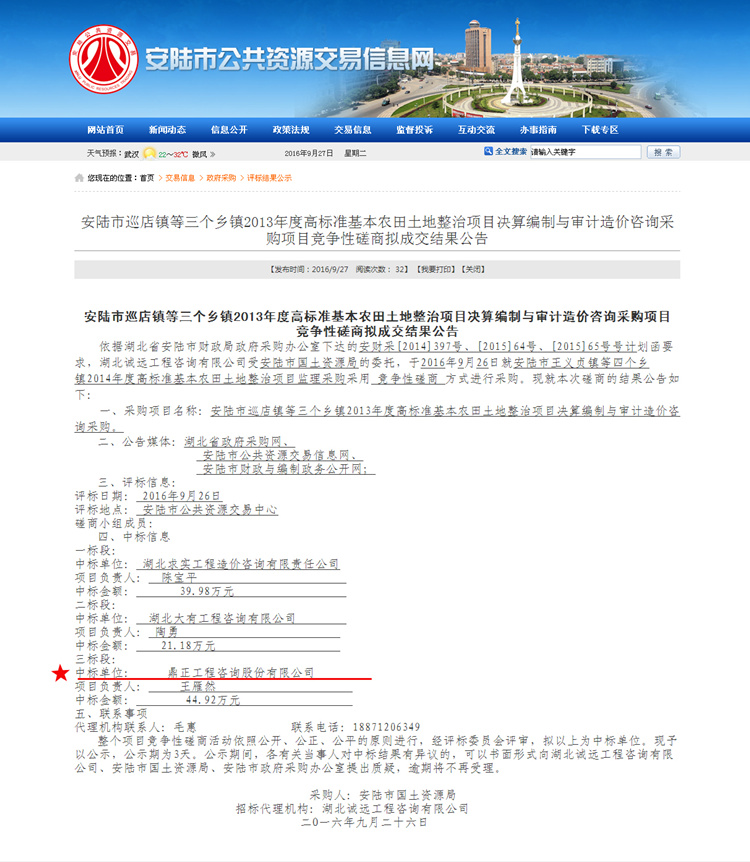 【經(jīng)營成果】我司中標(biāo)安陸市巡店鎮(zhèn)等三個鄉(xiāng)鎮(zhèn)2013年度高標(biāo)準(zhǔn)基本農(nóng)田土地整治項目決算編制與審計造價咨詢采購項目